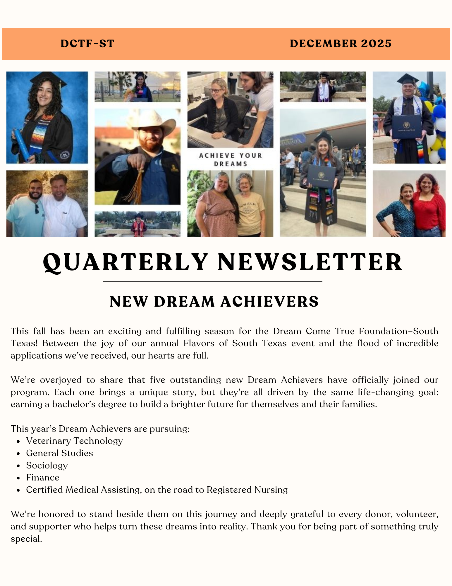 The last quarter brought meaningful milestones to celebrate! We had a wonderful 7th Annual Flavors of South Texas Event. We added new Dream Achievers to our organization