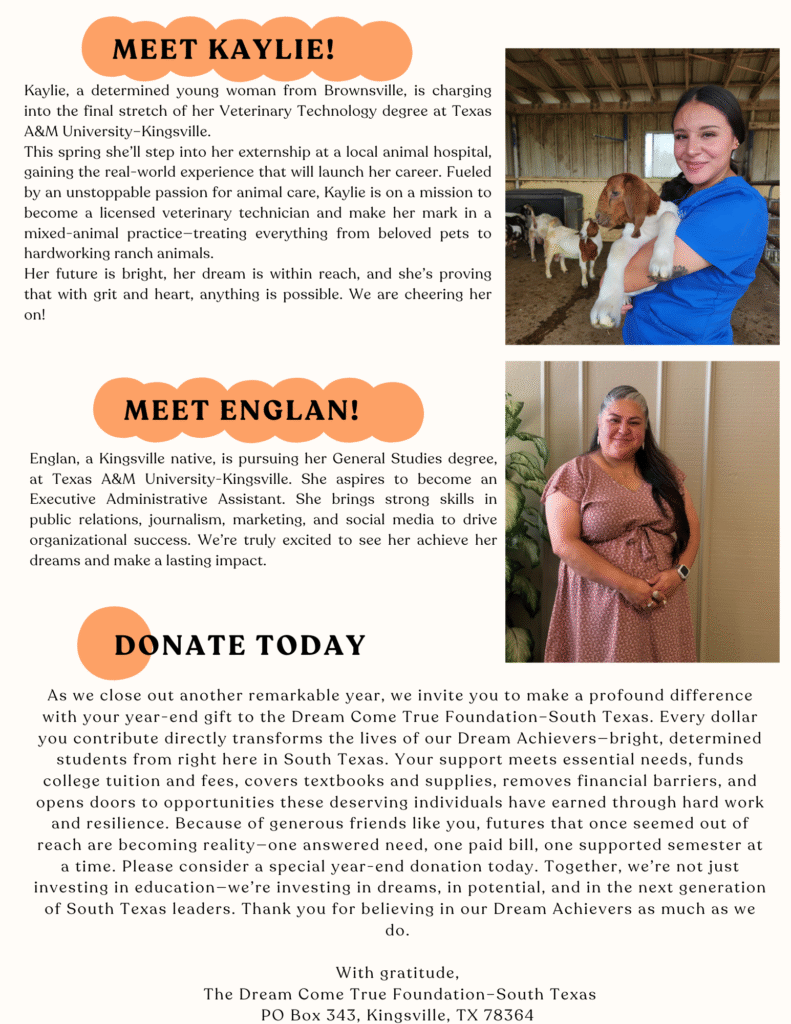 The last quarter brought meaningful milestones to celebrate! We had a wonderful 7th Annual Flavors of South Texas Event. We added new Dream Achievers to our organization and we have more Dream Achievers to come in the new year! Thank you for your community involvement, investment, and impact!